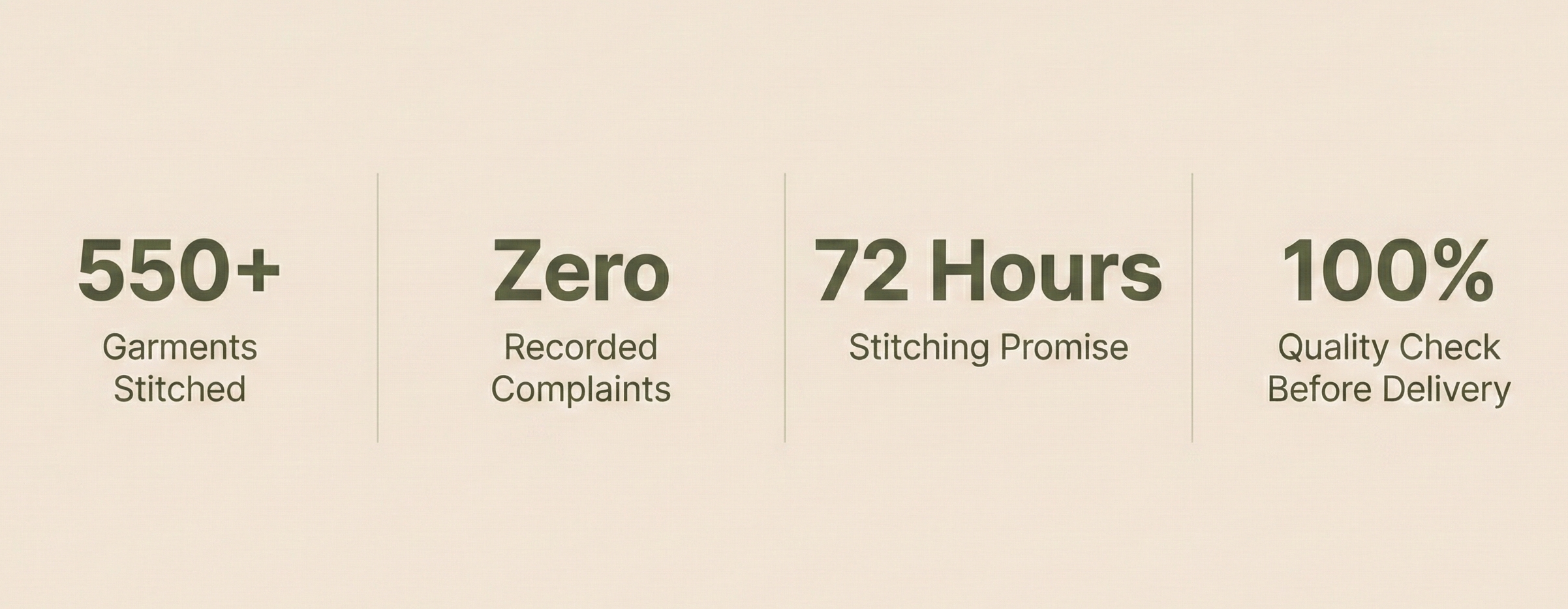 Once you book a slot, our tailor visits your address at the scheduled time, takes detailed measurements, discusses customisations, and collects fabric if required. Stitching begins after measurements are completed. Your outfit is stitched within 72 working hours (excluding Sundays and public holidays), quality-checked, and then dispatched.
